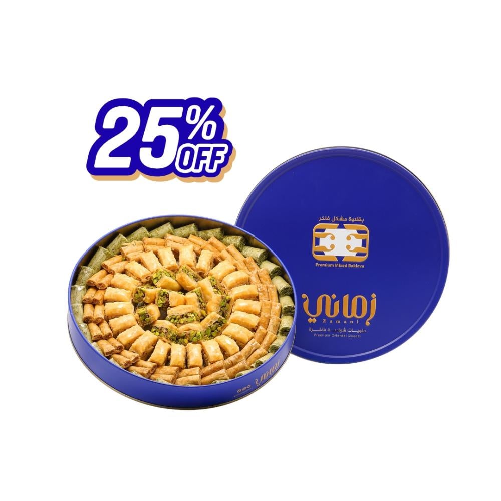 اطلب الآن بقلاوة بالمكسرات مشكلة فاخرة كبير 950 جم من حلويات زماني واستمتع بتجربة طعم لا تُنسى في كل مناسبة